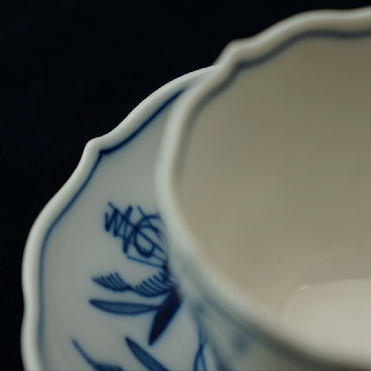 マイセンのマークである「青い双剣」が図柄の中に描かれています。