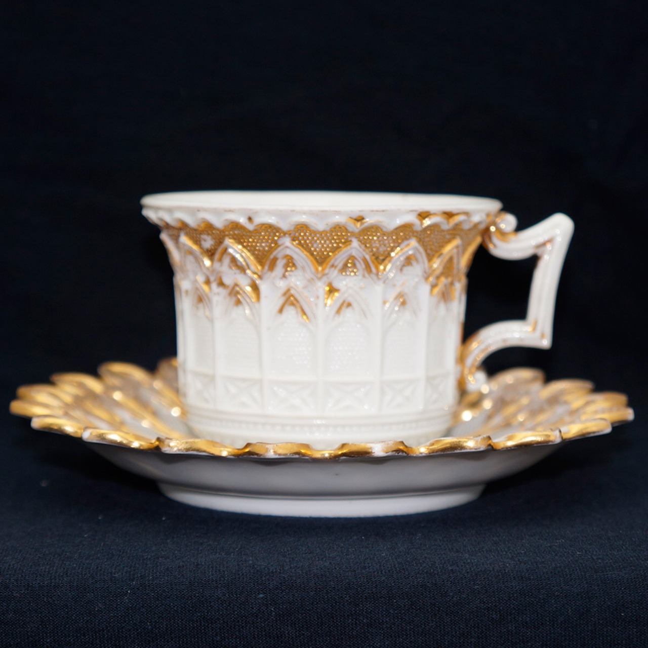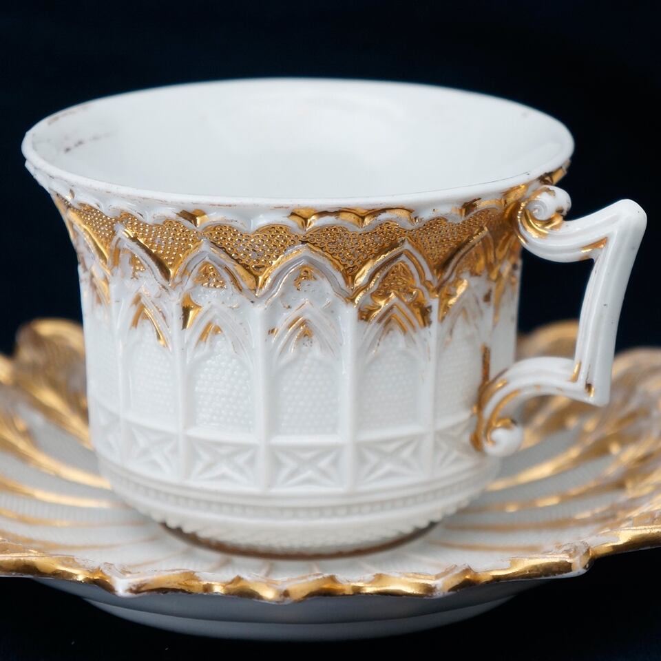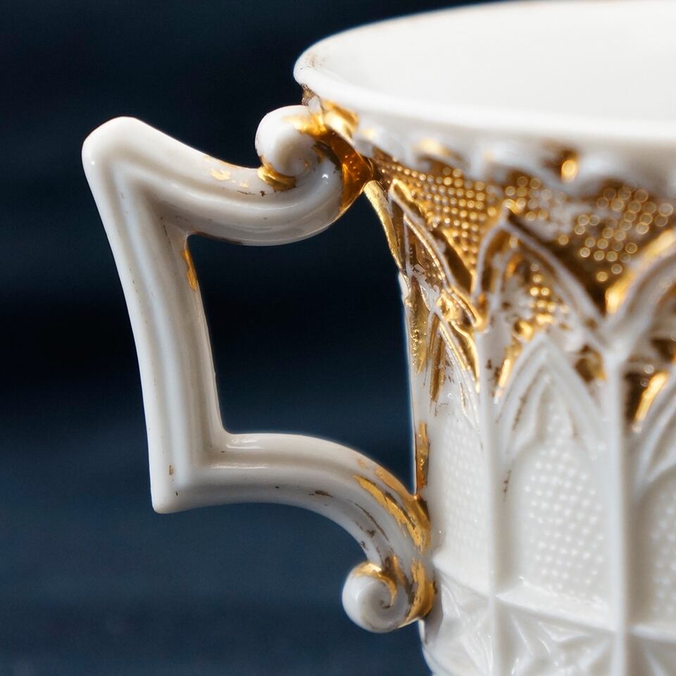 カップの側面はとがったアーチに柱のような、建築的なデザインです。
